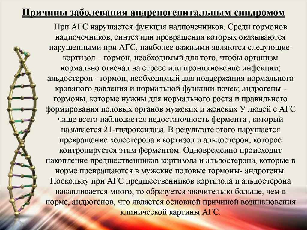 Причины заболевания андреногенитальным синдромомПри АГС нарушается функция надпочечников. Среди гормонов