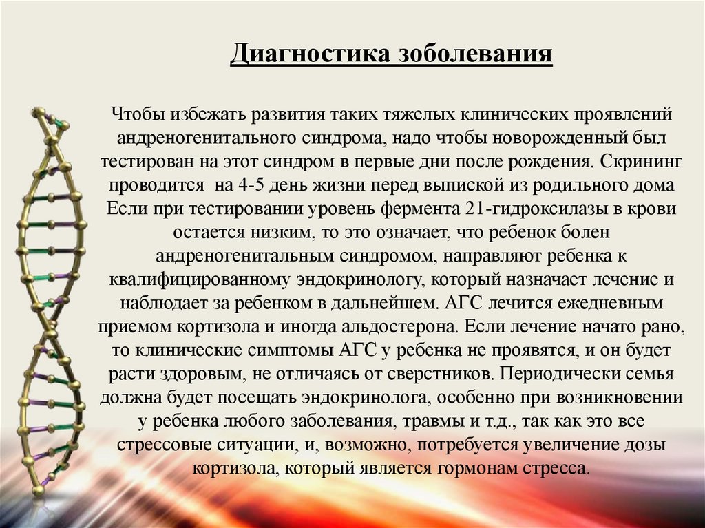 тестирован на этот синдром в первые дни после рождения. Скрининг