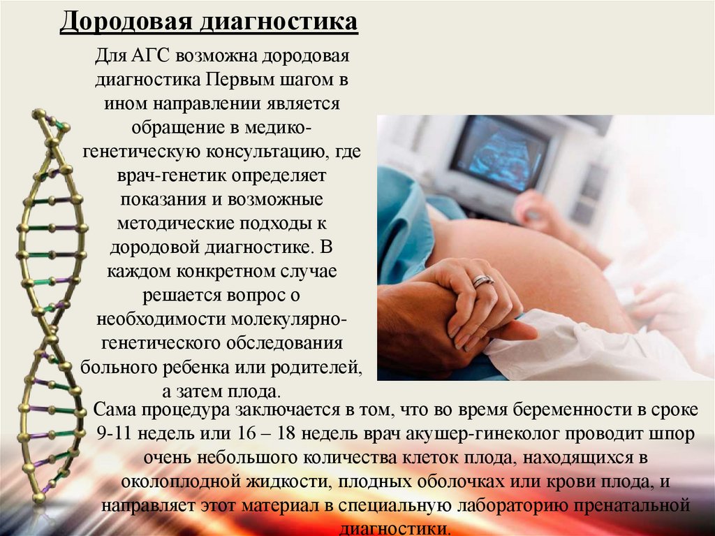 Дородовая диагностикаДля AГС возможна дородовая