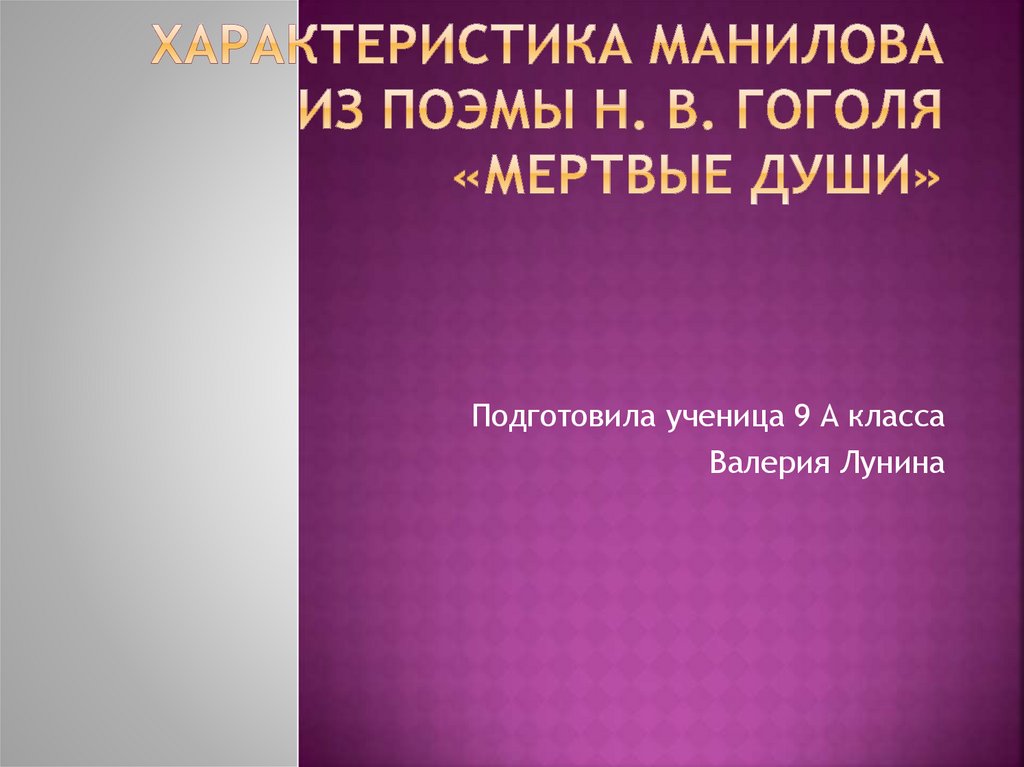 Характеристика Манилова из поэмы Н.В. Гоголя "Мёртвые души"