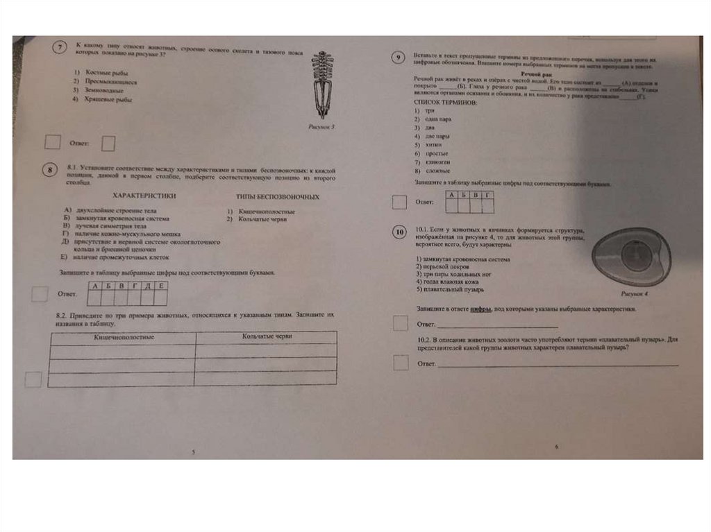 Вариант № 299137 ВПР 2024 год по биологии 6 класс. Вариант 5