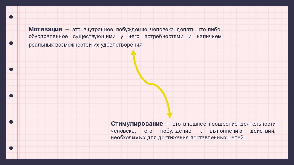 Мотивация – это внутреннее побуждение человека делать что-либо,обусловленное существующими у него потребностями и наличием
