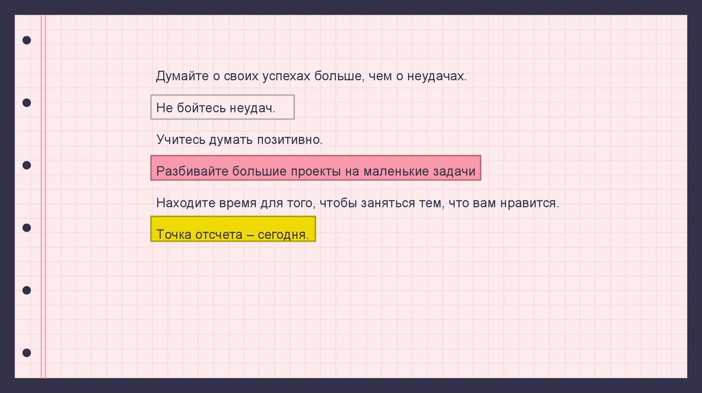 Думайте о своих успехах больше, чем о неудачах.Не бойтесь неудач.
