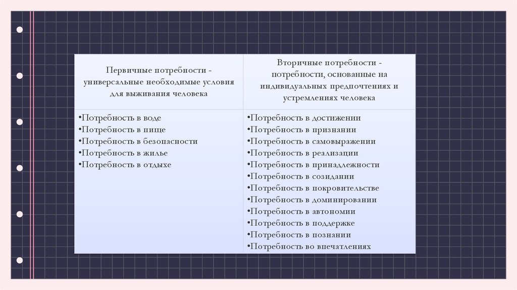 Первичные потребности универсальные необходимые условиядля выживания человека