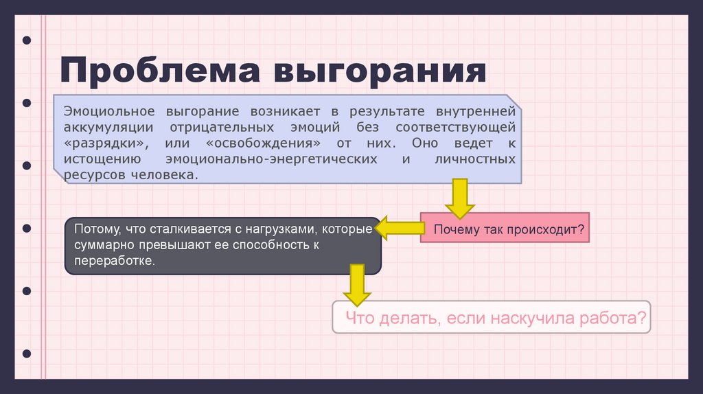 Проблема выгоранияЭмоциольное выгорание возникает в результате внутренней