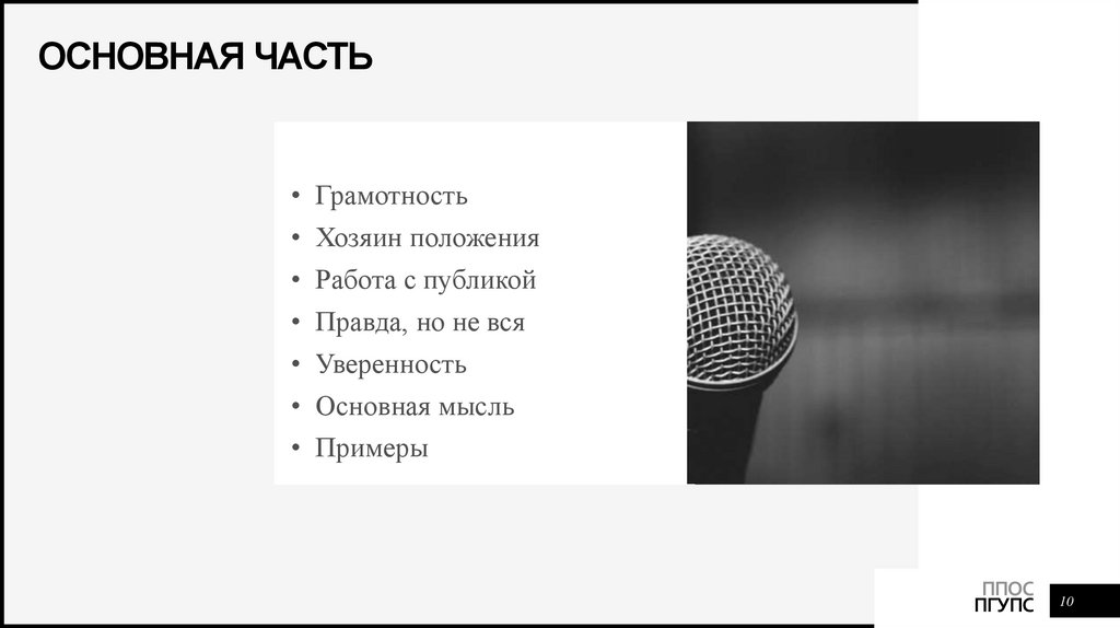 ОСНОВНАЯ ЧАСТЬ• Доступная подача