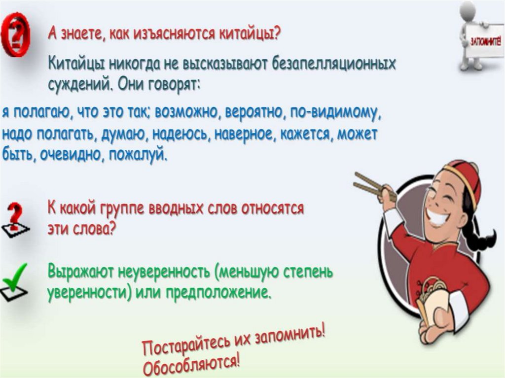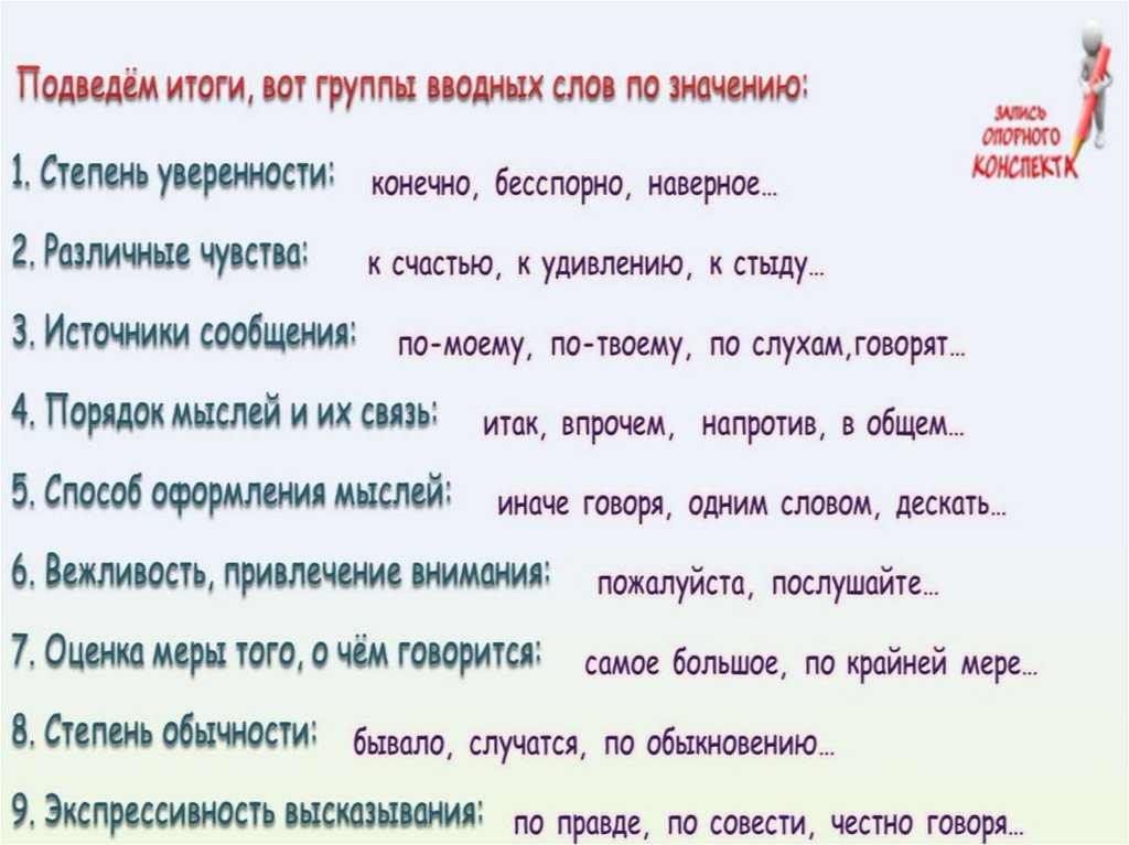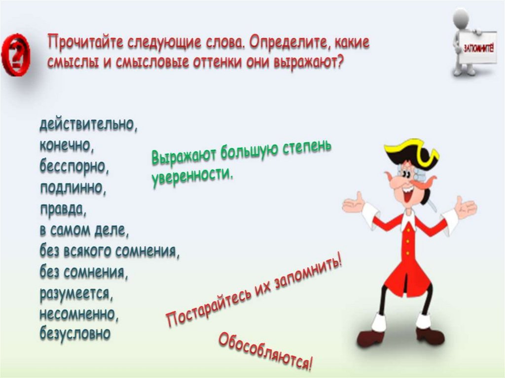 Вводные слова в предложениях. Выделение вводных слов запятыми