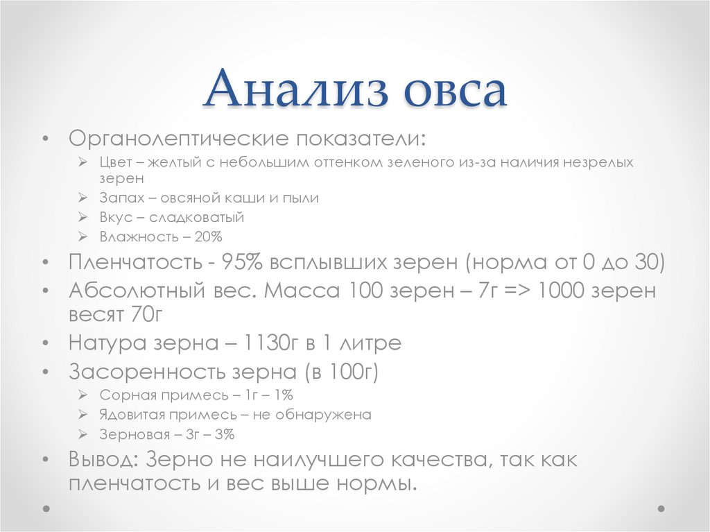 • Пленчатость - 95% всплывших зерен (норма от 0 до 30)