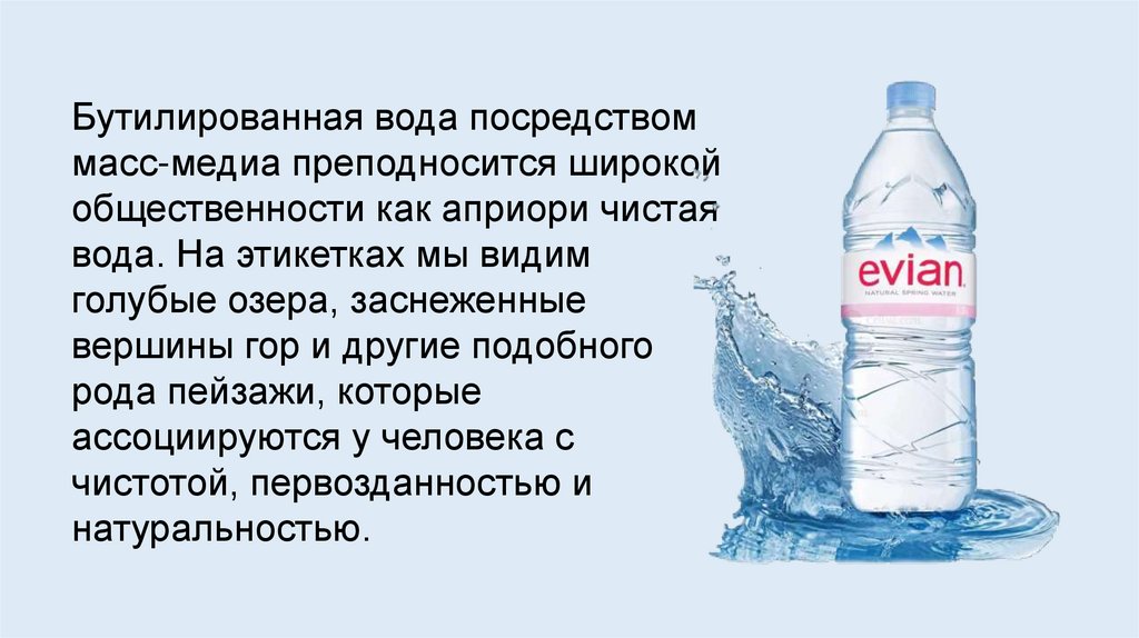 Бутилированная вода посредствоммасс-медиа преподносится широкой