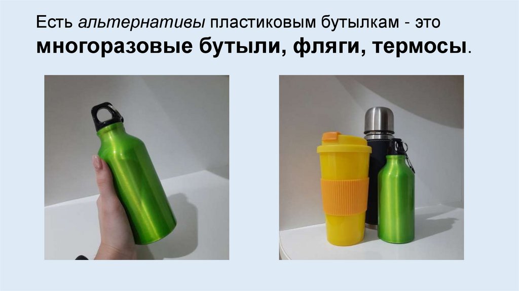 Есть альтернативы пластиковым бутылкам - этомногоразовые бутыли, фляги, термосы.