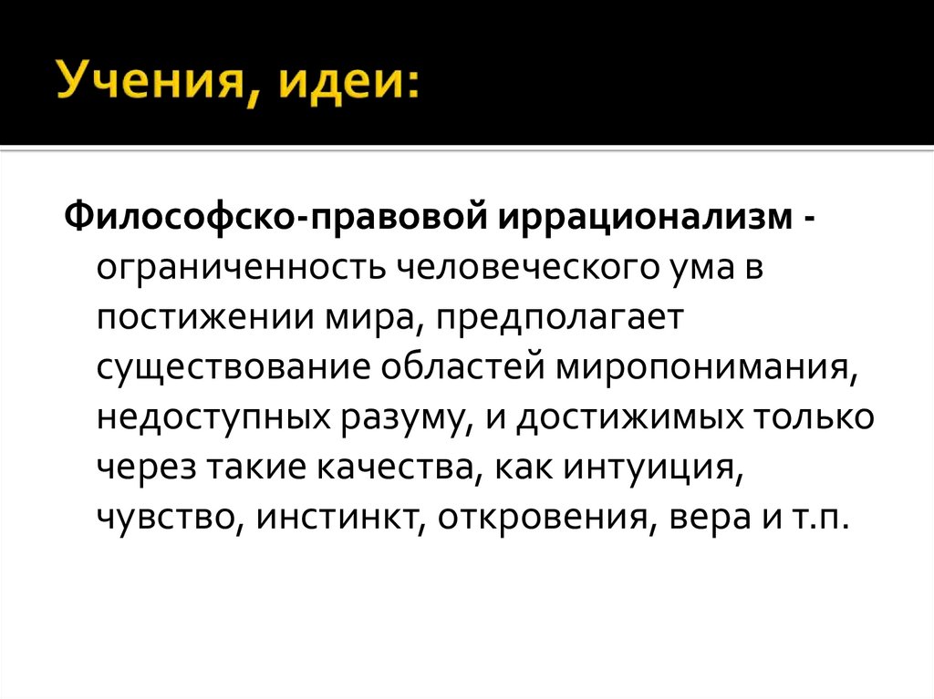 Философско-правовой иррационализм ограниченность человеческого ума впостижении мира, предполагает