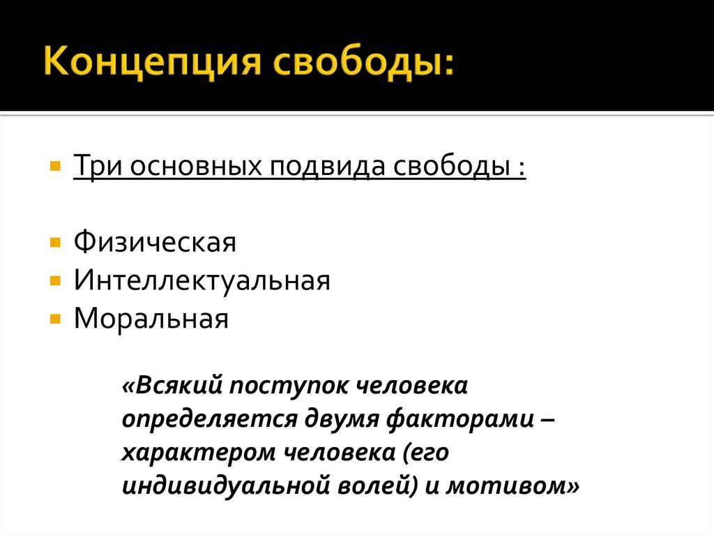 Три основных подвида свободы :Физическая