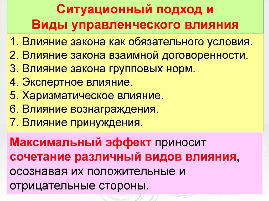 Ситуационный подход иВиды управленческого влияния