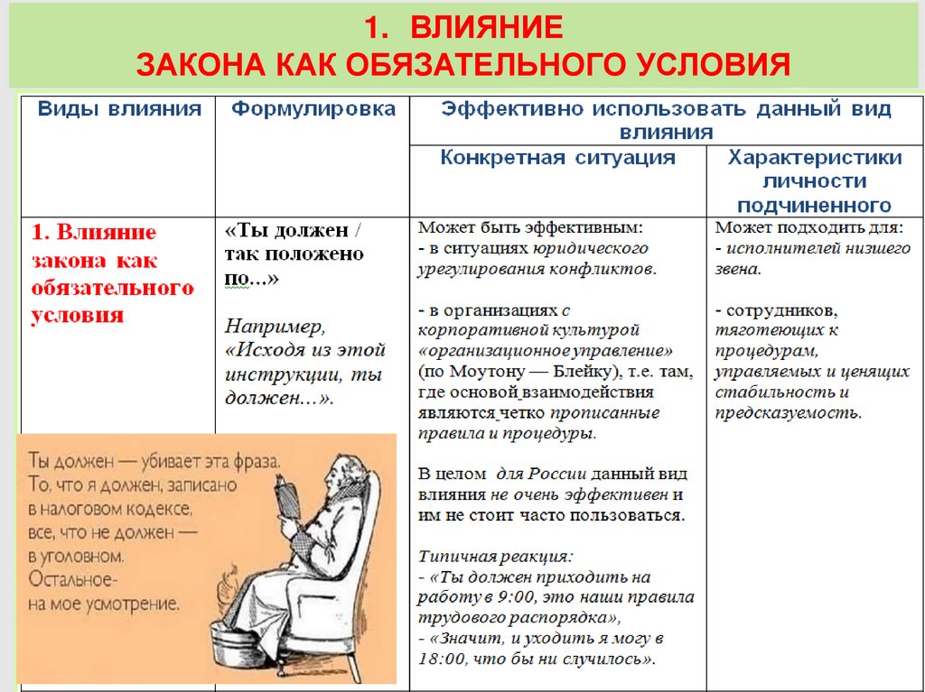 1. Влияние закона как обязательного условия.