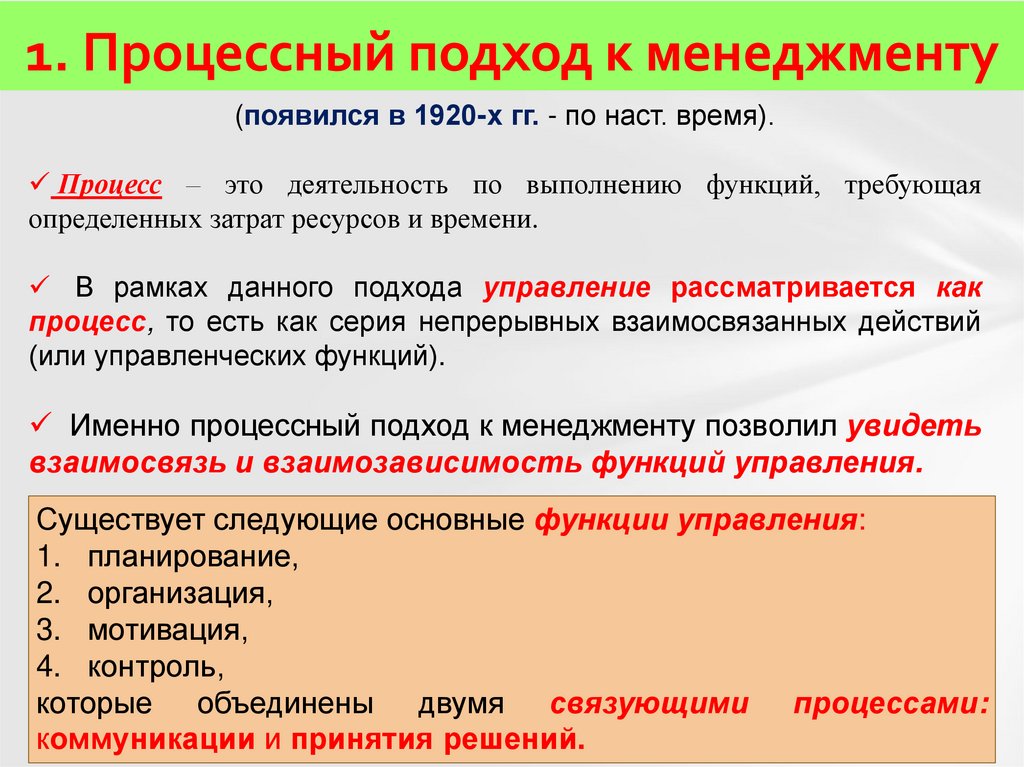 1. Процессный подход к менеджменту(появился в 1920-х гг. - по наст. время).