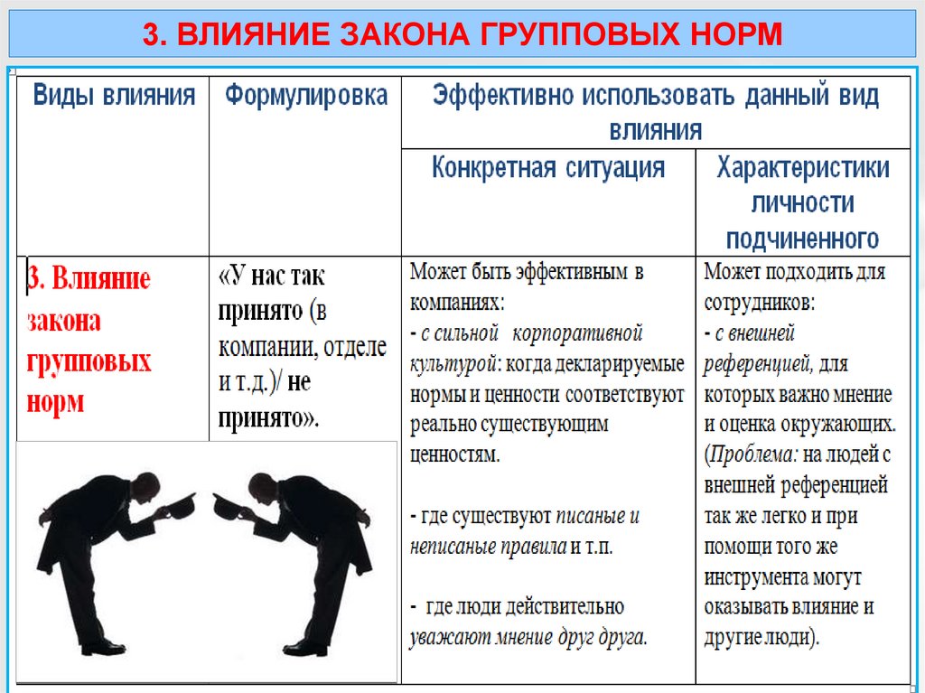 3. Влияние закона групповых норм.