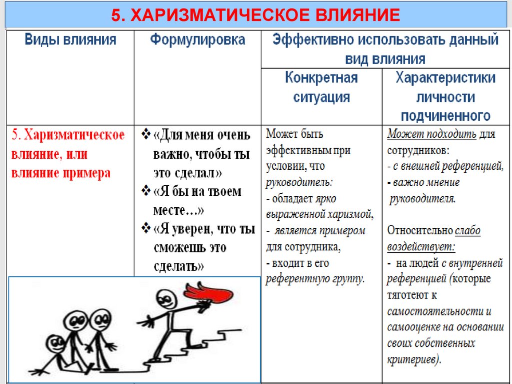 5. Харизматическое влияние.