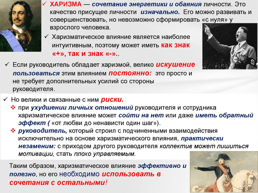 Таким образом, харизматическое влияние эффективно и