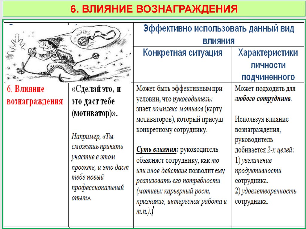 6. Влияние вознаграждения.