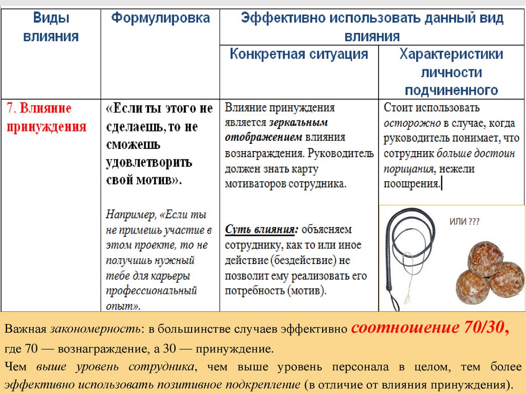 эффективно использовать позитивное подкрепление (в отличие от влияния принуждения).