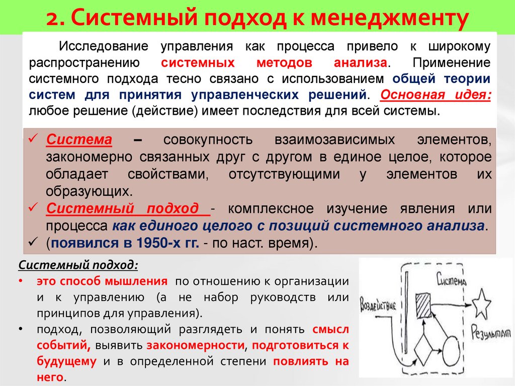2. Системный подход к менеджментуИсследование управления как процесса привело к широкому