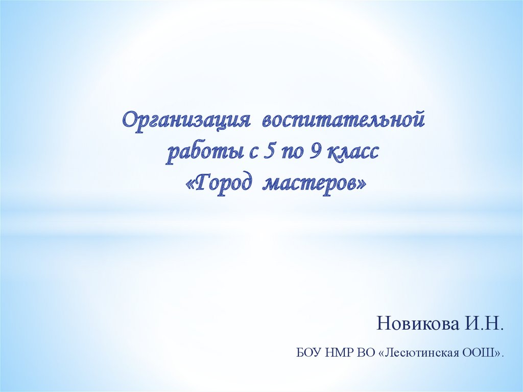 Город мастеров. Организация воспитательной работы с 5 по 9 класс