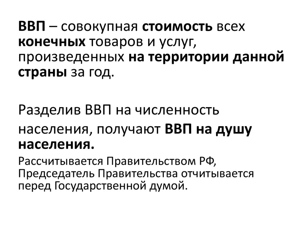 ВВП – совокупная стоимость всехконечных товаров и услуг,