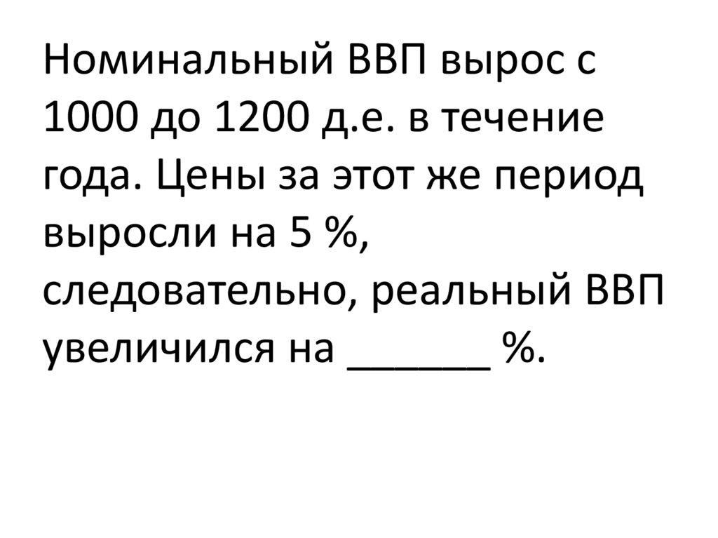 Номинальный ВВП вырос с1000 до 1200 д.е. в течение