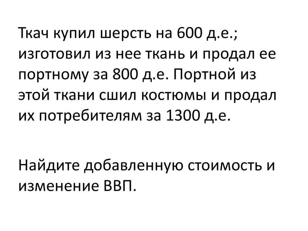 Ткач купил шерсть на 600 д.е.;изготовил из нее ткань и продал ее