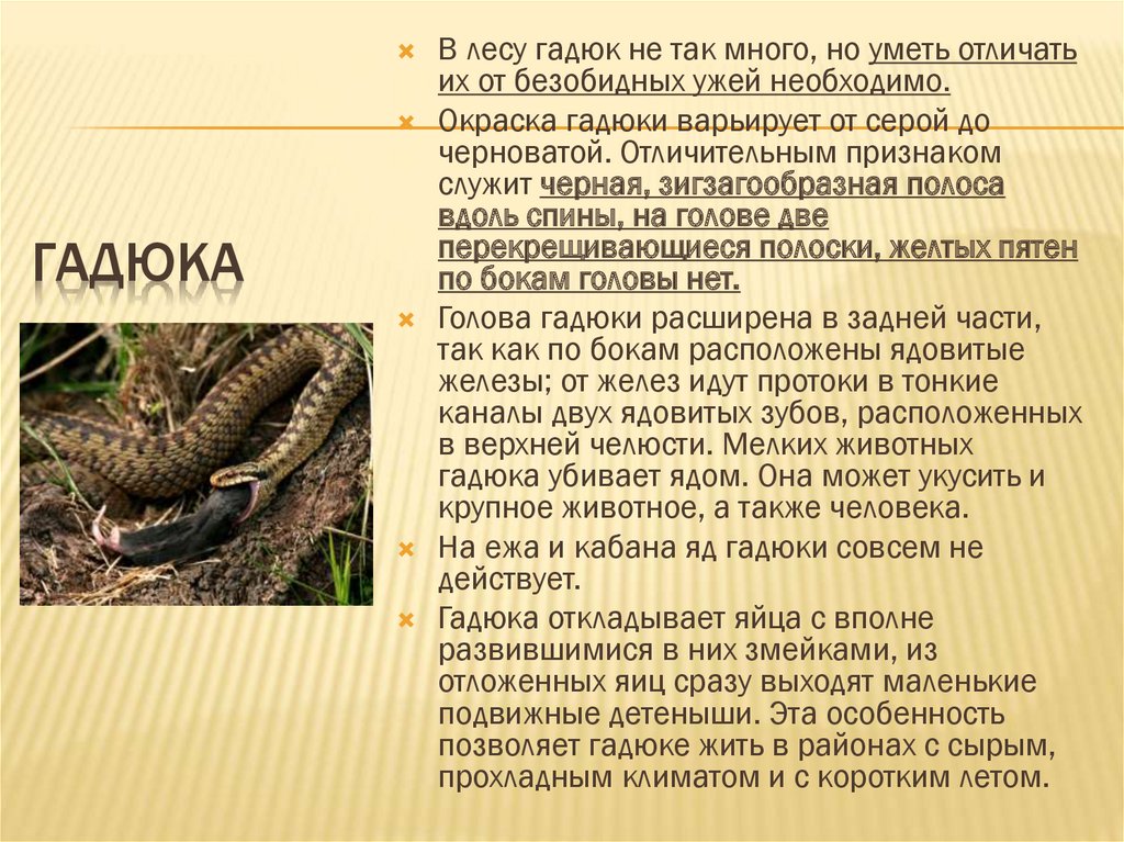 ВЫВОД: ГАДЮКА –ЯДОВИТАЯ ЗМЕЯ!Гадюка убивает добычу своим ядом. В этом