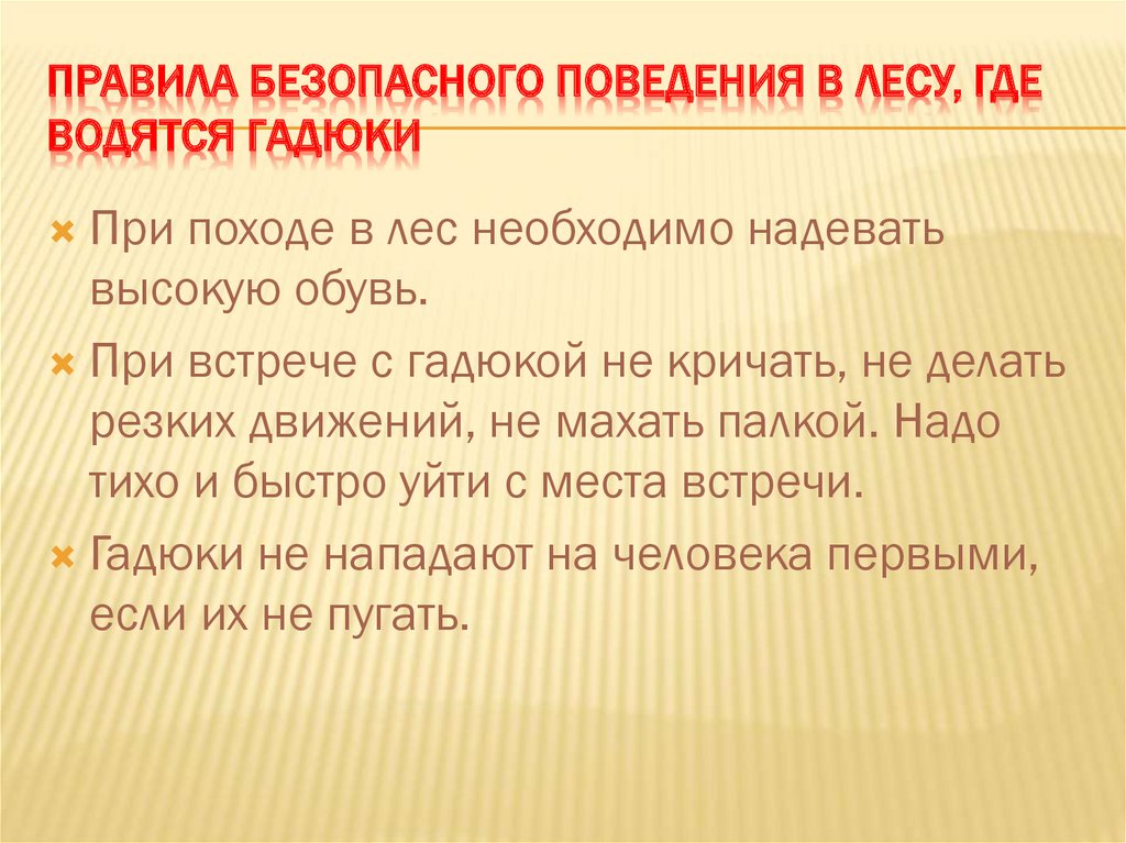 ПРАВИЛА БЕЗОПАСНОГО ПОВЕДЕНИЯ В ЛЕСУ, ГДЕВОДЯТСЯ ГАДЮКИ