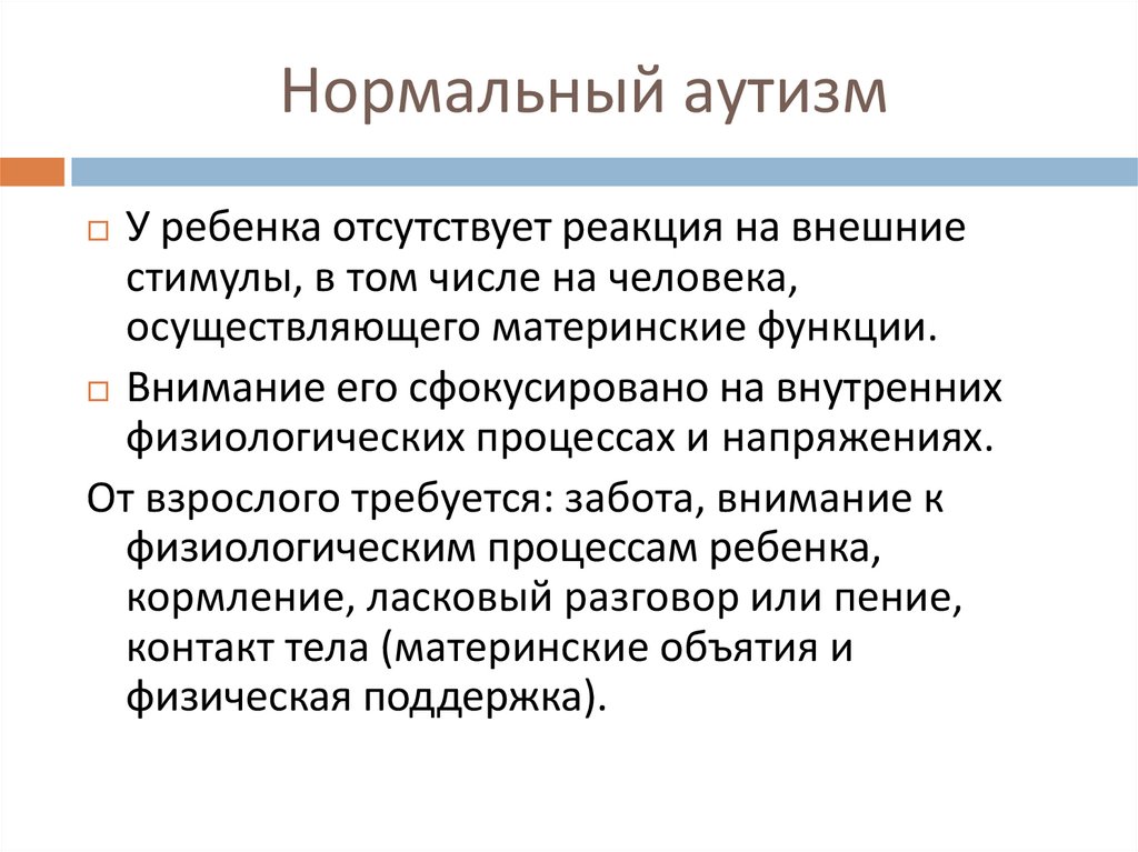 Нормальный аутизмУ ребенка отсутствует реакция на внешние