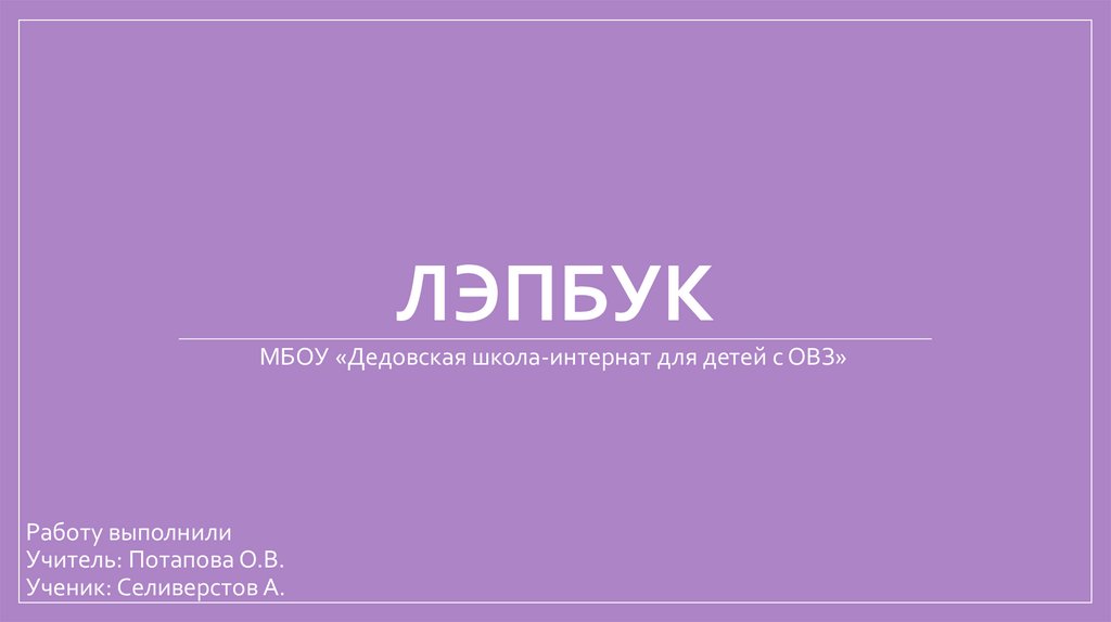 ЛЭПБУКМБОУ «Дедовская школа-интернат для детей с ОВЗ»