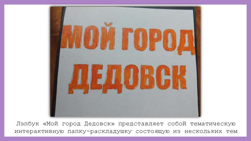 Лэпбук «Мой город Дедовск» представляет собой тематическуюинтерактивную папку-раскладушку состоящую из нескольких тем