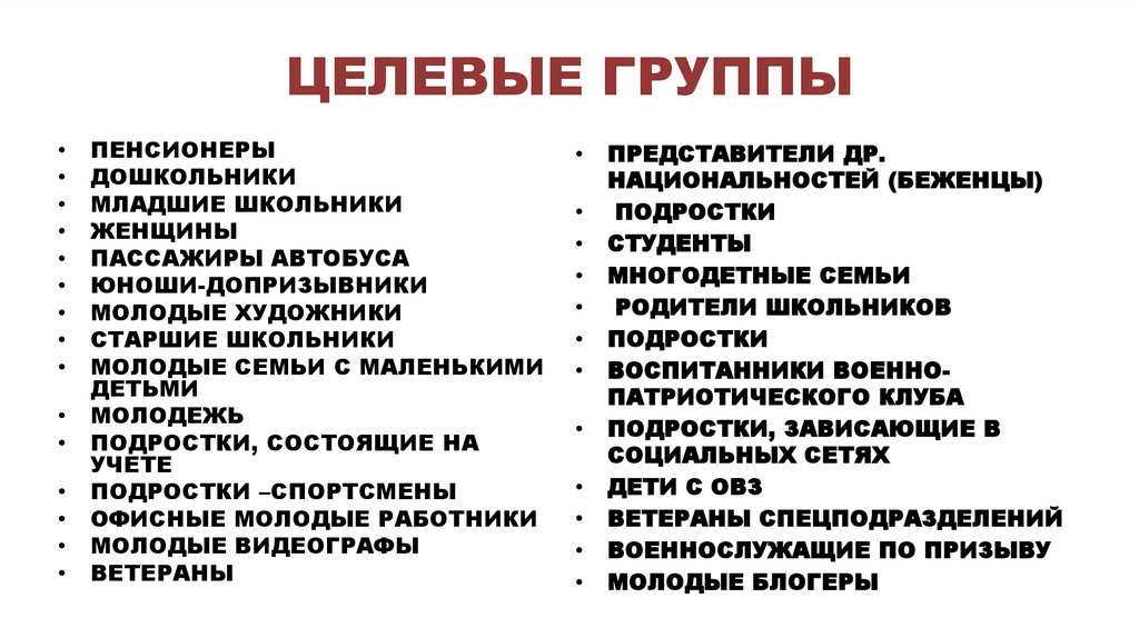 ЦЕЛЕВЫЕ ГРУППЫПЕНСИОНЕРЫ