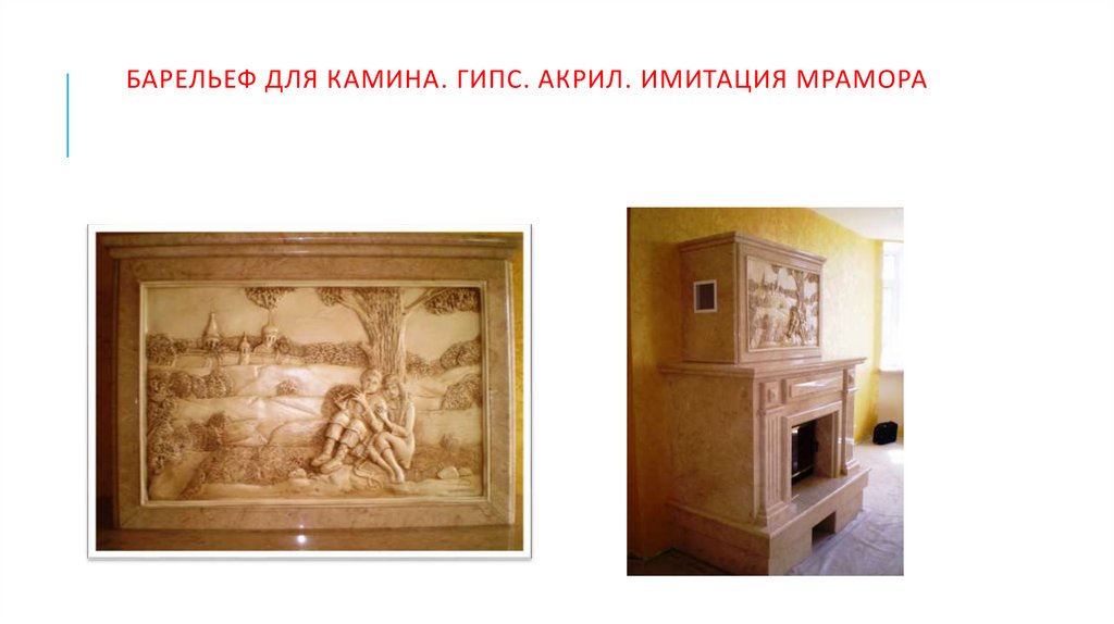 БАРЕЛЬЕФ ДЛЯ КАМИНА. ГИПС. АКРИЛ. ИМИТАЦИЯ МРАМОРА3.