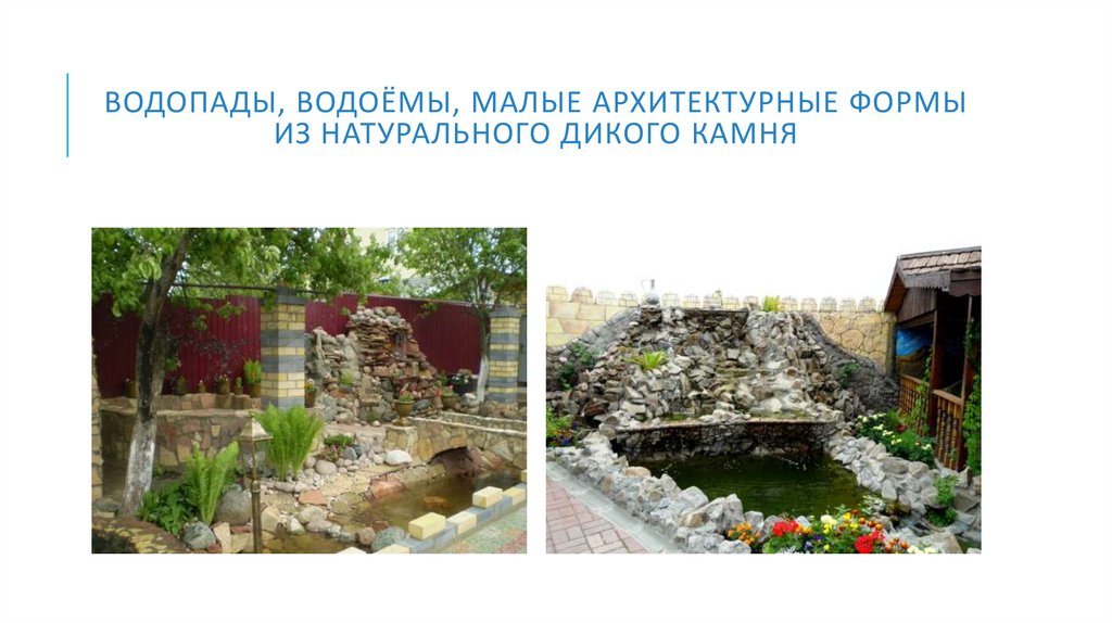 ВОДОПАДЫ, ВОДОЁМЫ, МАЛЫЕ АРХИТЕКТУРНЫЕ ФОРМЫИЗ НАТУРАЛЬНОГО ДИКОГО КАМНЯ