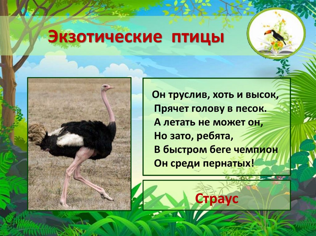 Экзотические птицыОн труслив, хоть и высок,