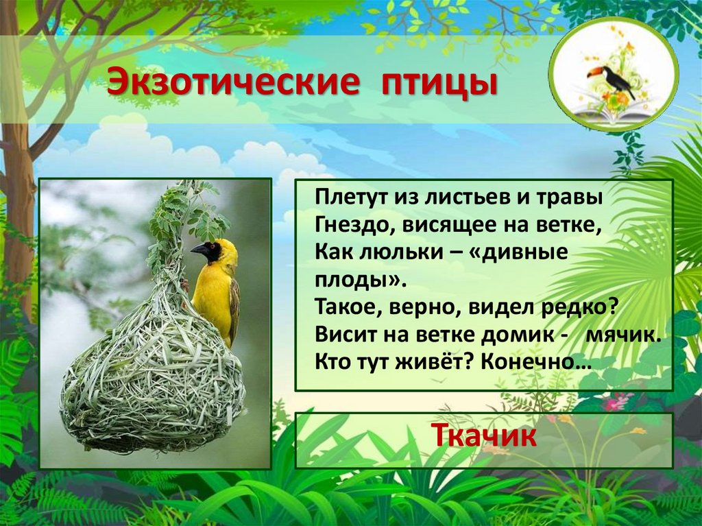 Экзотические птицыПлетут из листьев и травы