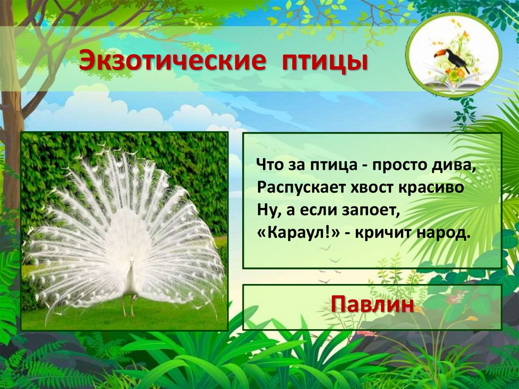 Экзотические птицыРаспускает хвост павлином,