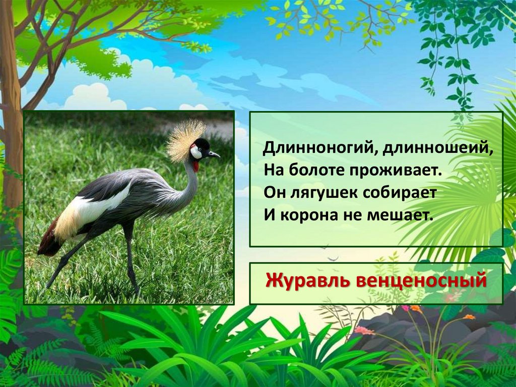 Длинноногий, длинношеий,На болоте проживает.