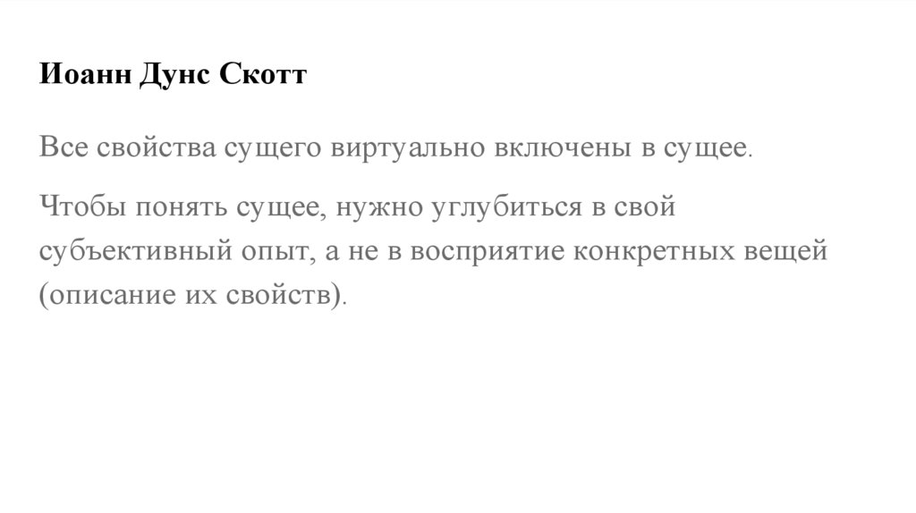 Иоанн Дунс СкоттВсе свойства сущего виртуально включены в сущее.