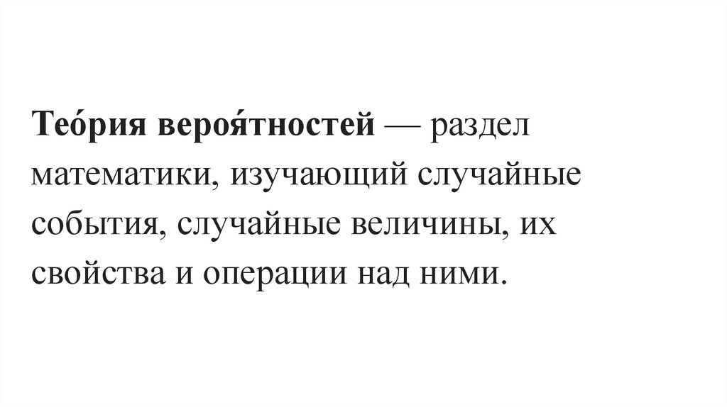 Тео́рия вероя́тностей — разделматематики, изучающий случайные