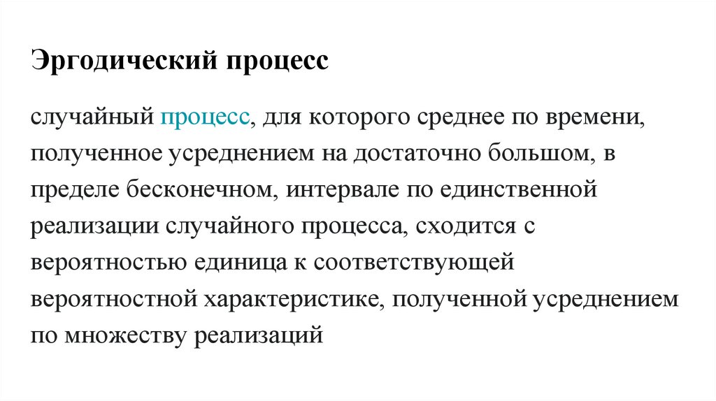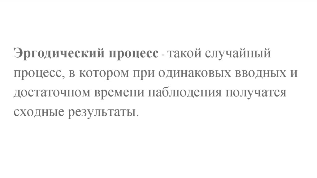 Эргодический процесс - такой случайныйпроцесс, в котором при одинаковых вводных и