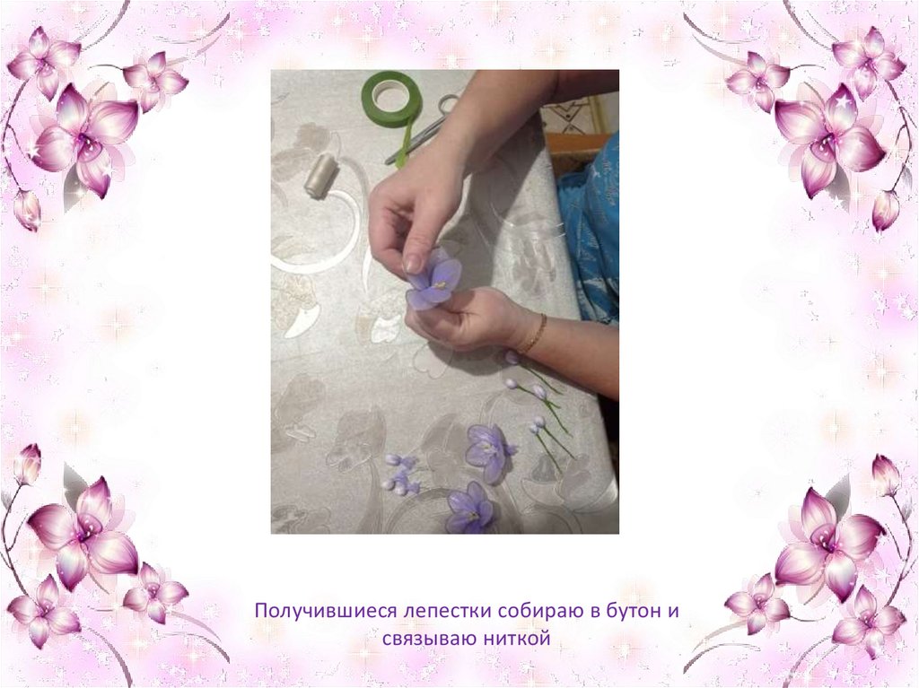 Получившиеся лепестки собираю в бутон исвязываю ниткой