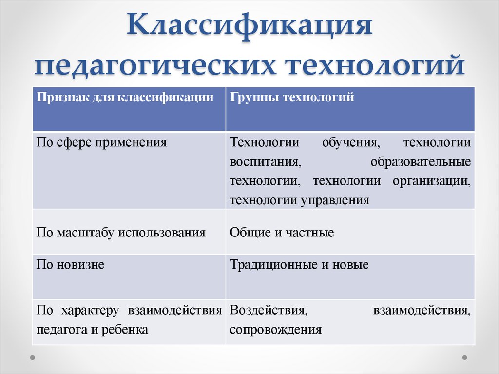 Классификацияпедагогических технологий