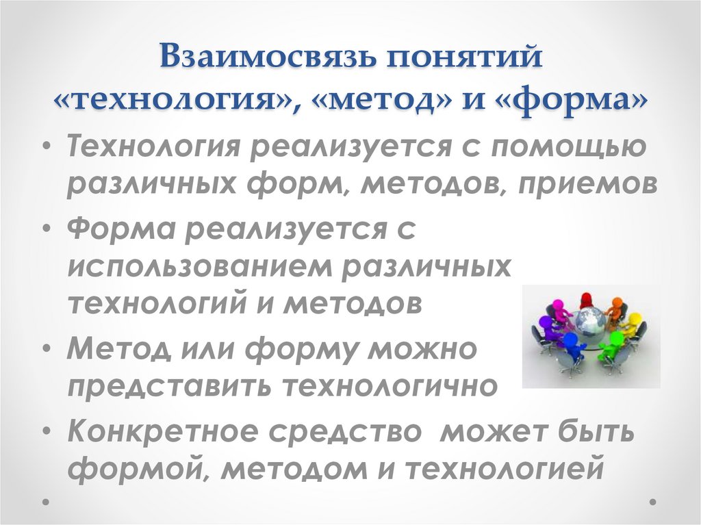 Взаимосвязь понятий«технология», «метод» и «форма»