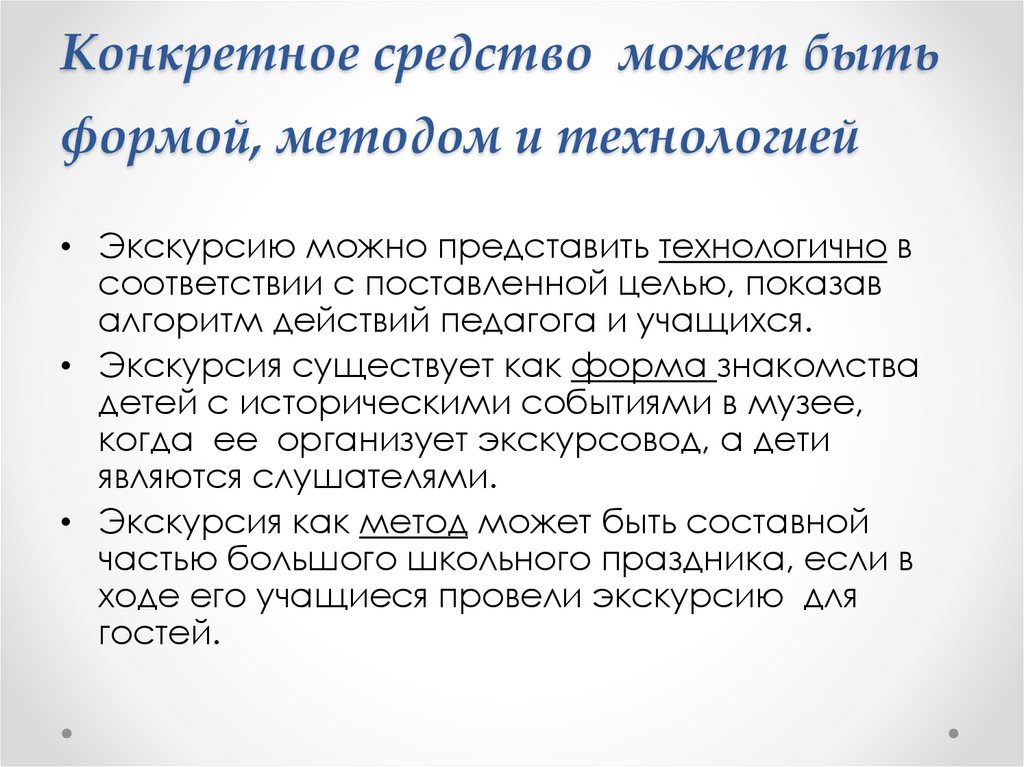 Конкретное средство может бытьформой, методом и технологией