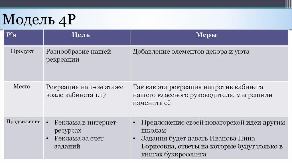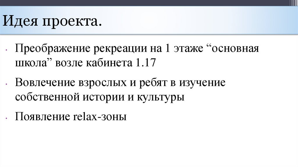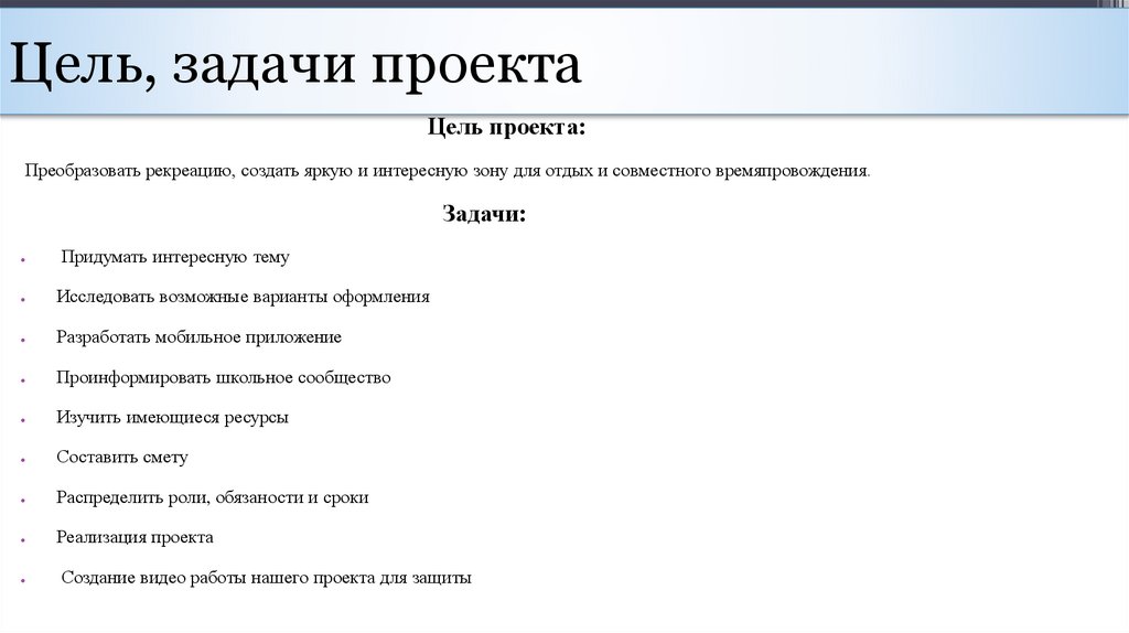 Преобразовать рекреацию, создать яркую и интересную зону для отдых и совместного времяпровождения.