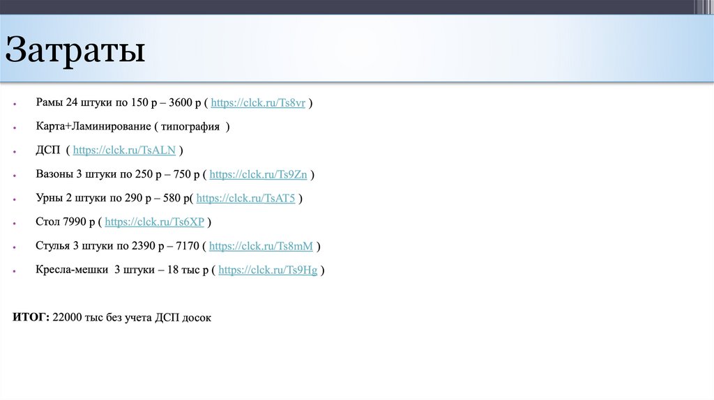 Бюджет для: стола, стульев, кресел-мешков, вазонов (ш)